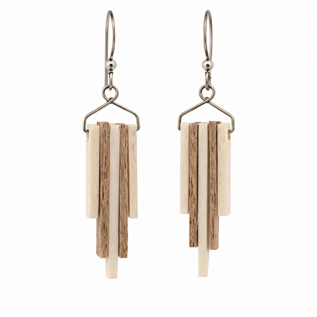 A collaboration between the mountains and the ocean. These earrings are made with a mix of beef and whale bone.